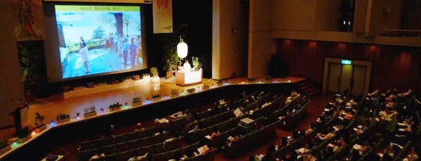 ご自身が農民代表として活動されている様子が映像で紹介されました。豊受の作物はしっかり根を張り土の栄養を吸い上げ、自然農で育った今年の稲は、台風にも負けずに生き残り多くの実りを見せてくれました。農民たちが汗水流して作られた作物が生き生きと育った美しい映像に、会場から拍手が沸き起こりました。