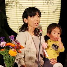コングレスはお子さんと別室で聴講していましたが、プレゼンテーションではお子さんを抱えて行いました。