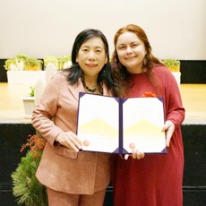 講演終了後には、ルーマニアでのホメオパシーやジェモセラピーの活動、JPHMAへの貢献など称え、JPHMA名誉会員が由井大会長より送られました。