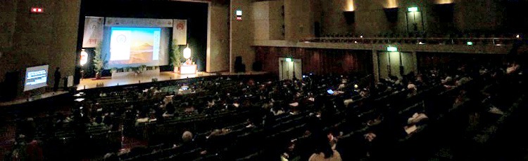 ステージに飾られている神様と美との関わりとその意味についてのお話、由井大会長の言う美は魂の美しさのことです。本日は由井大会長の魂、心、体を三位一体で治療していくZENホメオパシーによって治癒に導かれた2つのケースが紹介されました。