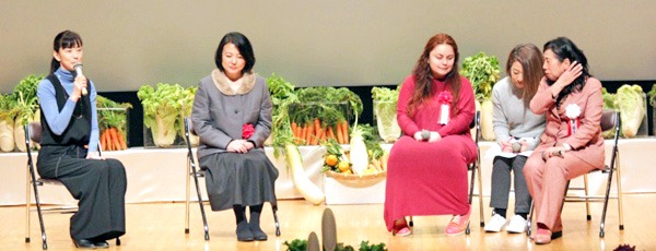 本大会の「美しい体、美しい心、美しい魂 ~それは、自然からのプレゼント~」をテーマに、女優の杉田かおるさん、ルーマニアのマリナ・シウマス・リムブ医学博士、由井寅子大会長、田村翔子ホメオパスによるパネルディスカッションが行われました。