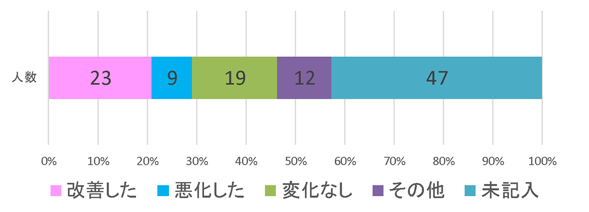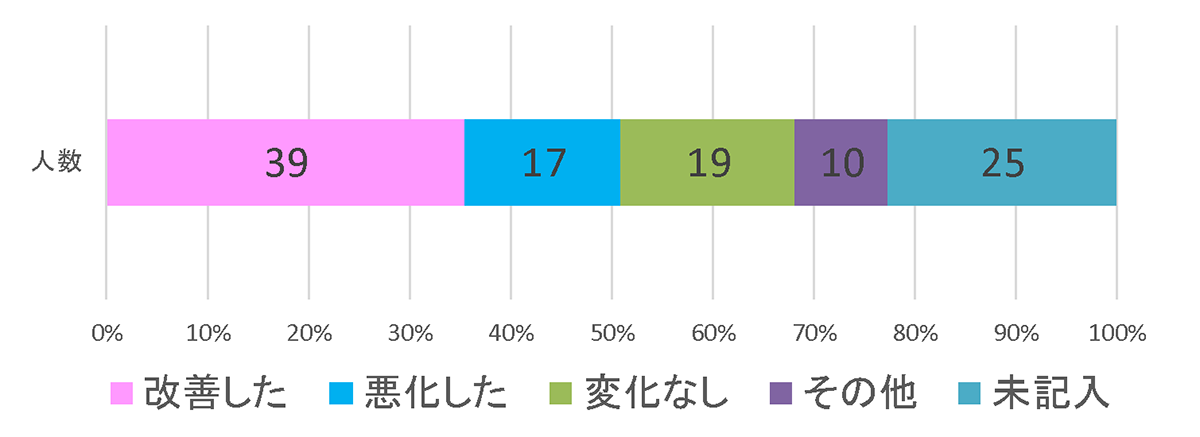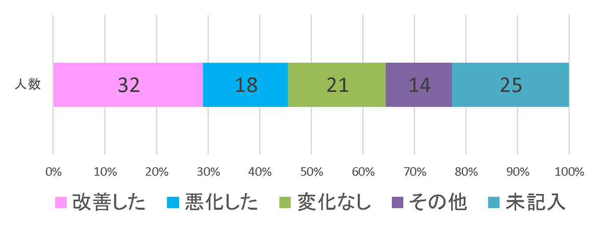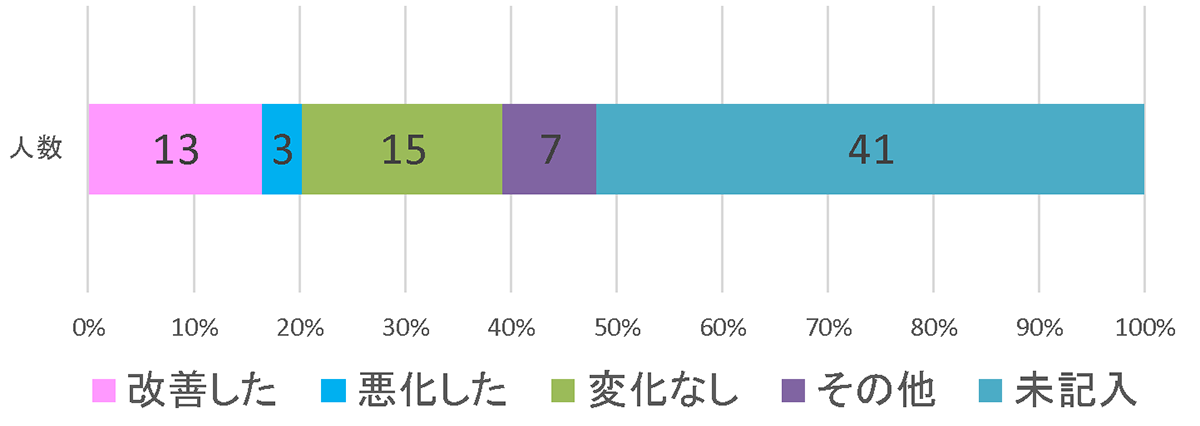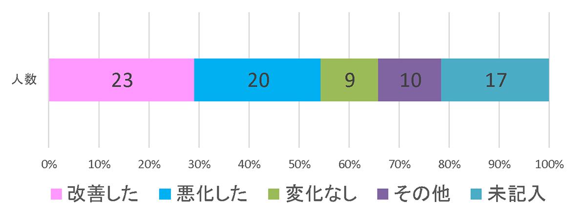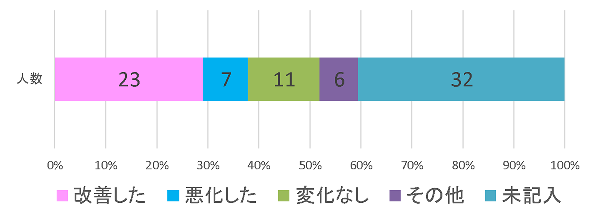 - 物事に失敗しても周囲の人に助けを求めたり、自己嫌悪・否定が減少した。
